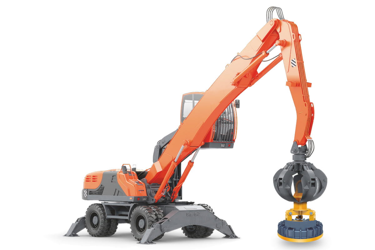 Los electroimanes de la serie EMG-SM están diseñados para utilizarse en la mayoría de las máquinas móviles de manipulación de chatarra, como manipuladores de materiales, excavadoras o grúas. Gracias a su diseño universal, pueden integrarse fácilmente en distintos tipos de equipos.