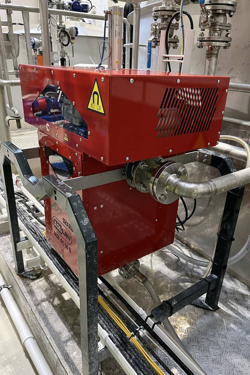El filtro automático MSP-AC-SHARK, que capta las partículas férricas, se instala en el bypass de la tubería. Durante el ciclo de limpieza, el material procesado fluye a través de una tubería que no está equipada con un separador magnético y, por lo tanto, el material no se limpia durante este tiempo.