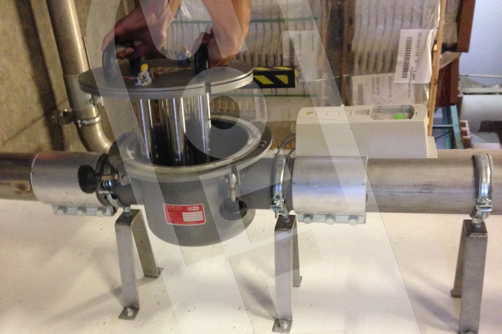 Este filtro magnético para tuberías se utiliza a menudo para separar partículas de hierro de los materiales transportados neumáticamente (por vacío o por presión), como harina, azúcar y granulado de plástico.