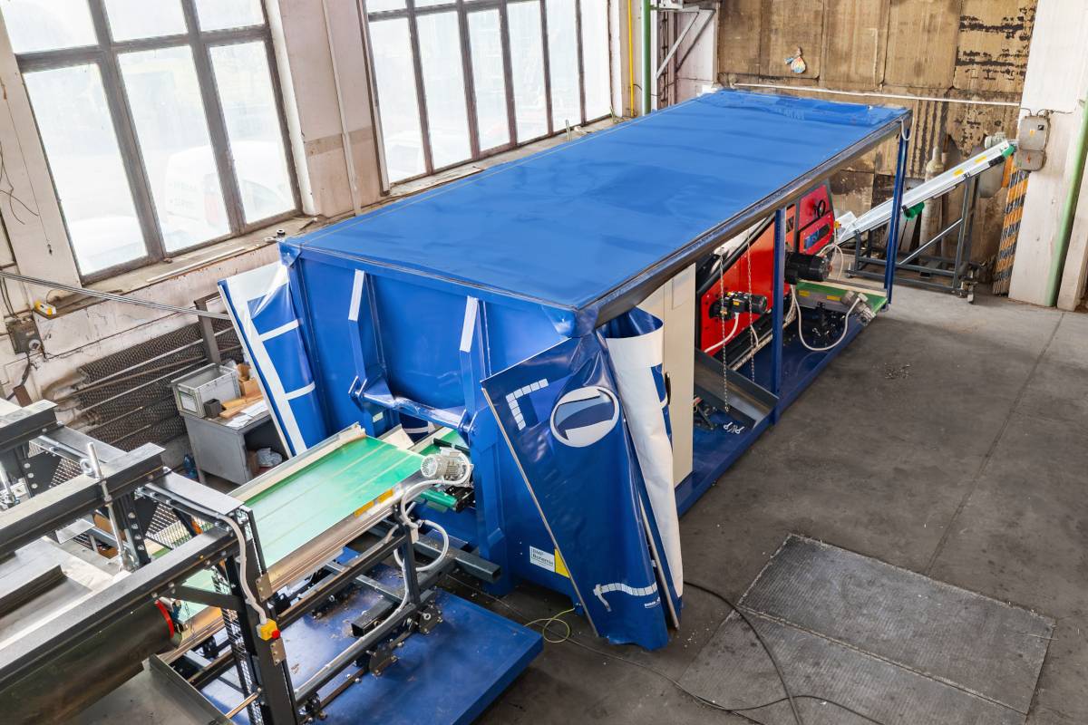Mínimo. Ambos módulos están sobre plataformas roll-off, por lo que basta con cargarlos en un camión con sistema de gancho estándar y trasladarlos donde se requiera clasificar. La instalación no requiere obras civiles — una vez posicionada, conecte la alimentación, despliegue los transportadores y la línea queda operativa en pocos minutos. El resultado es máxima flexibilidad y un ahorro logístico significativo.