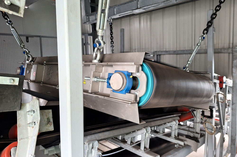 Overband magnético DND-AC – la solución de calidad suprema para la separación automática de impurezas ferromagnéticas de materiales llevados por cintas transportadoras.