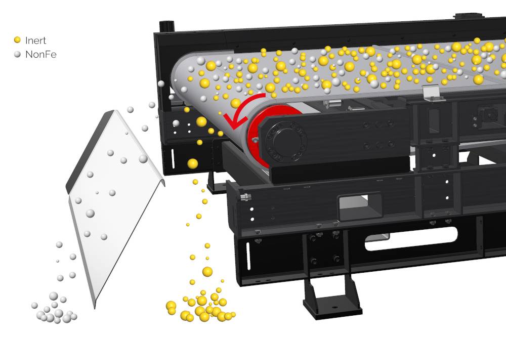 El cilindro magnético (rotor del separador) genera, a altas velocidades (cuando los polos magnéticos se alternan rápidamente), un campo magnético que magnetiza brevemente incluso los materiales metálicos no ferromagnéticos. La polaridad magnética de las partículas así magnetizadas es la misma que la polaridad del campo magnético generado por el rotor del separador. Por lo tanto, los materiales magnetizados son repelidos y expulsados automáticamente de la cinta transportadora