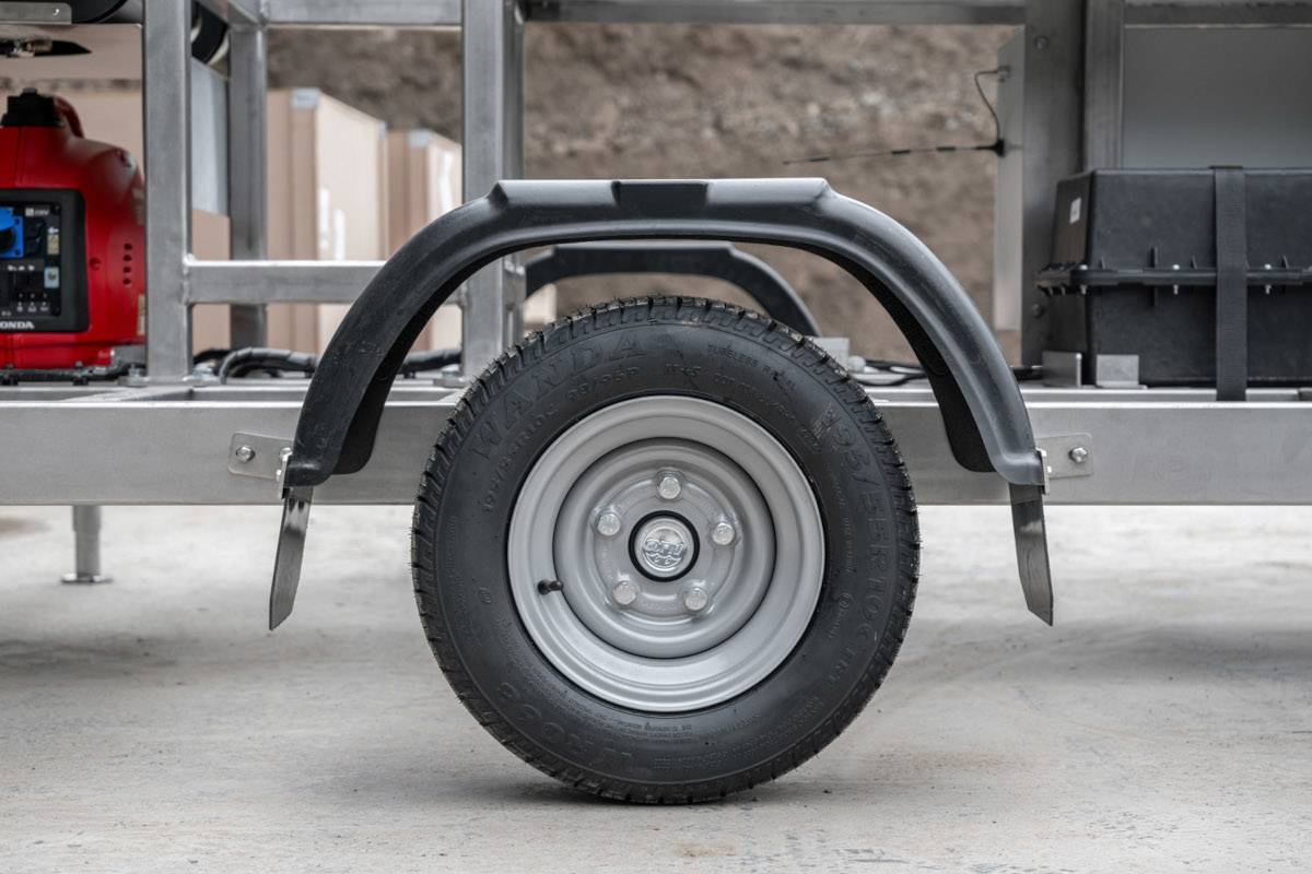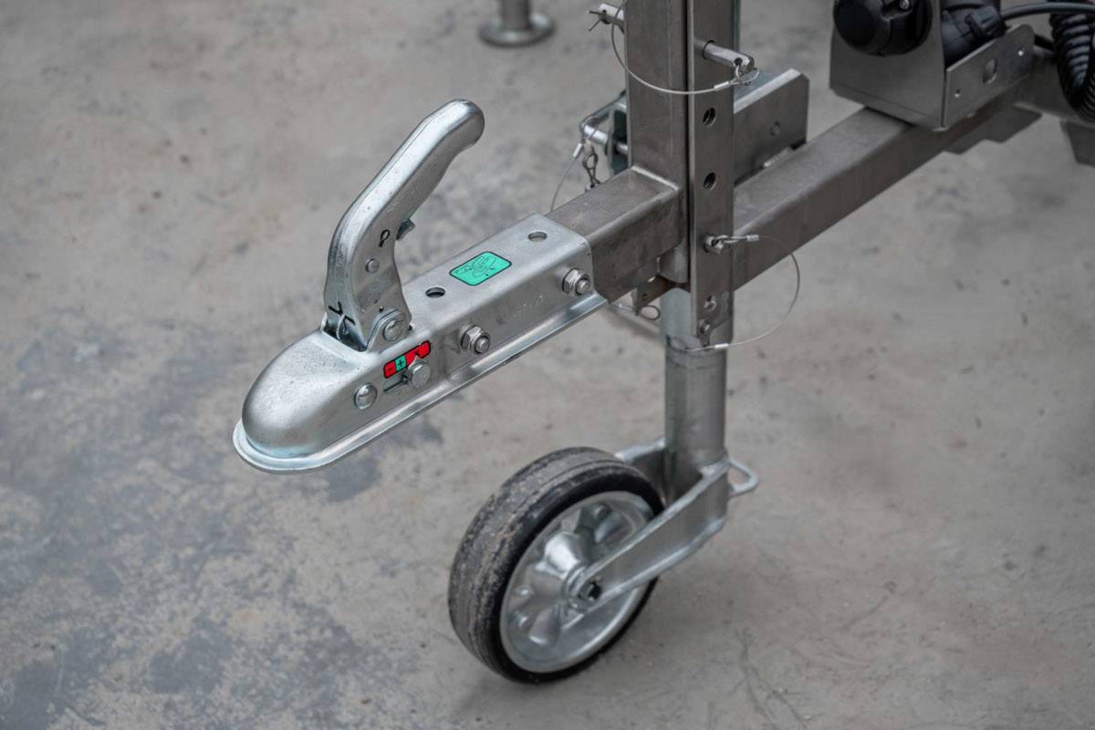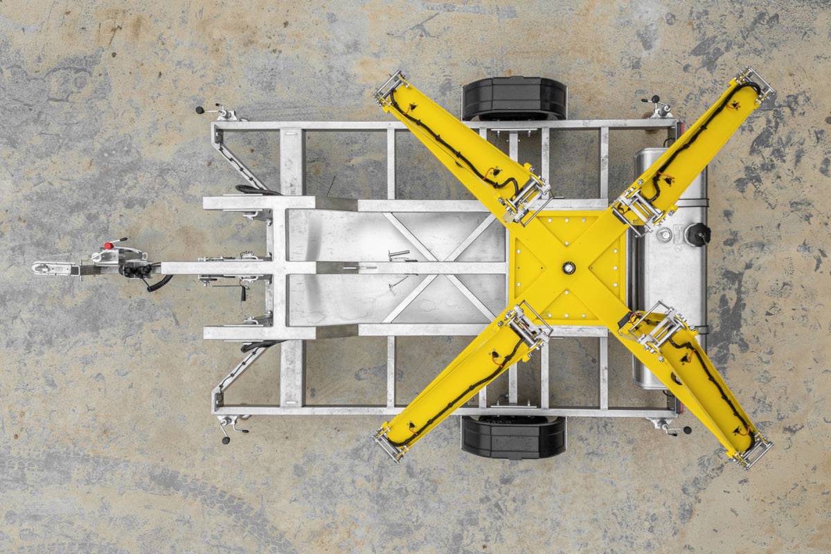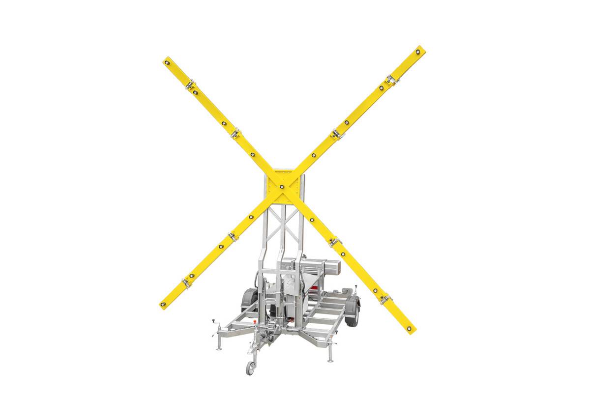 - Con chasis (FIREFLY): La cruz luminosa está ubicada sobre el chasis con patas estabilizadoras. Puede fijarla fácilmente en el enganche para remolque del vehículo y transportarla al lugar deseado en la pista del aeropuerto. En esta versión podrá transportar dos cruces luminosas al mismo tiempo.