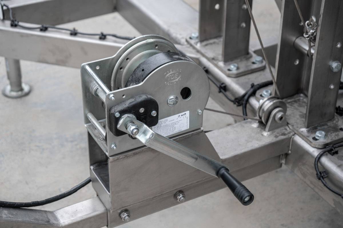 - Sin chasis (FIREFLY ECO): La cruz luminosa se coloca en el suelo sobre cuatro patas regulables. Está adaptada para su manipulación con carretilla elevadora.