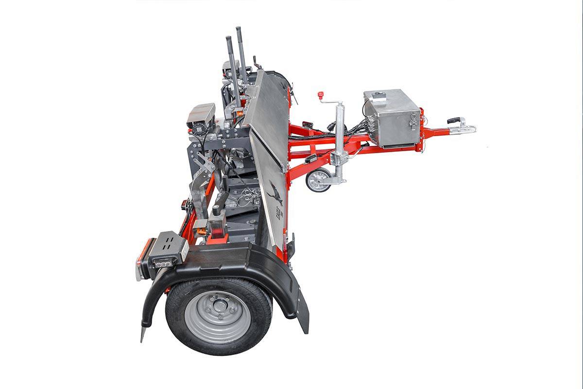 Esta barredora magnética gigante está compuesta de tres carros de remolque separados de estructura muy resistente y duradera, conectados durante el barrido magnético en un remolque triple para formar una única unidad de barrido con rendimiento extraordinario. La suspensión principal central está equipada con brazos telescópicos con conexiones estandarizadas para conectar de manera fácil las barredoras laterales sin que sea necesario usar ninguna herramienta.